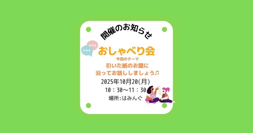 はみんぐ 2025年10月20日(月)おしゃべり会 開催のお知らせ