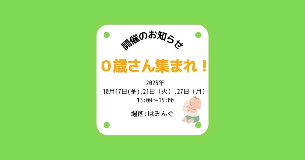 はみんぐ 2025年10月17日(金)/21日(火)/27日(月) 0歳さん集まれ!開催のお知らせ