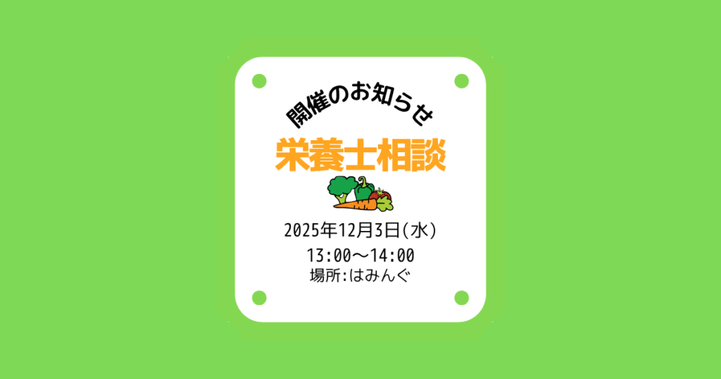 はみんぐ 2025年12月3日(水) 栄養士相談 開催のお知らせ