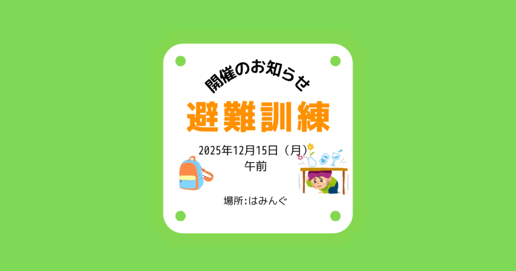 はみんぐ 2025年12月15日(月) 避難訓練 開催のお知らせ
