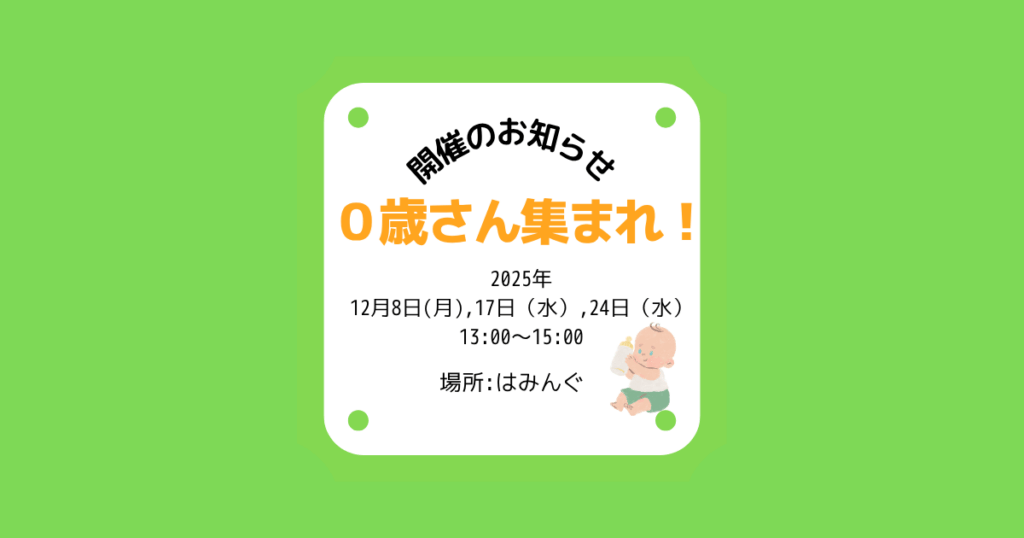 はみんぐ 2025年12月8日(月)/17日(水)/24日(水) 0歳さん集まれ!開催のお知らせ