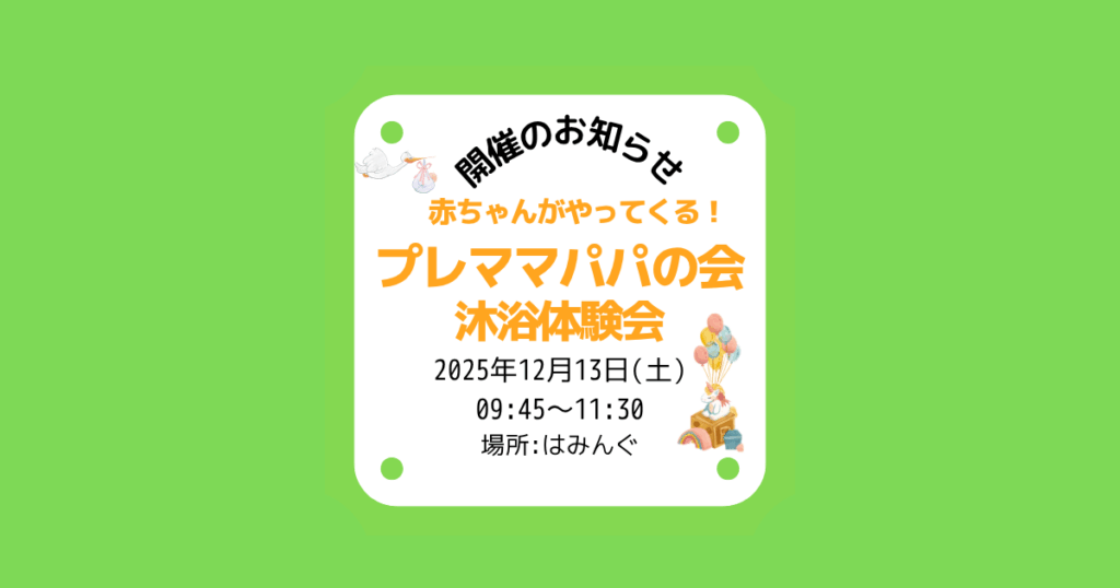 はみんぐ 2025年12月13日(土) 赤ちゃんがやってくる!プレママパパの会 沐浴体験会 開催のお知らせ