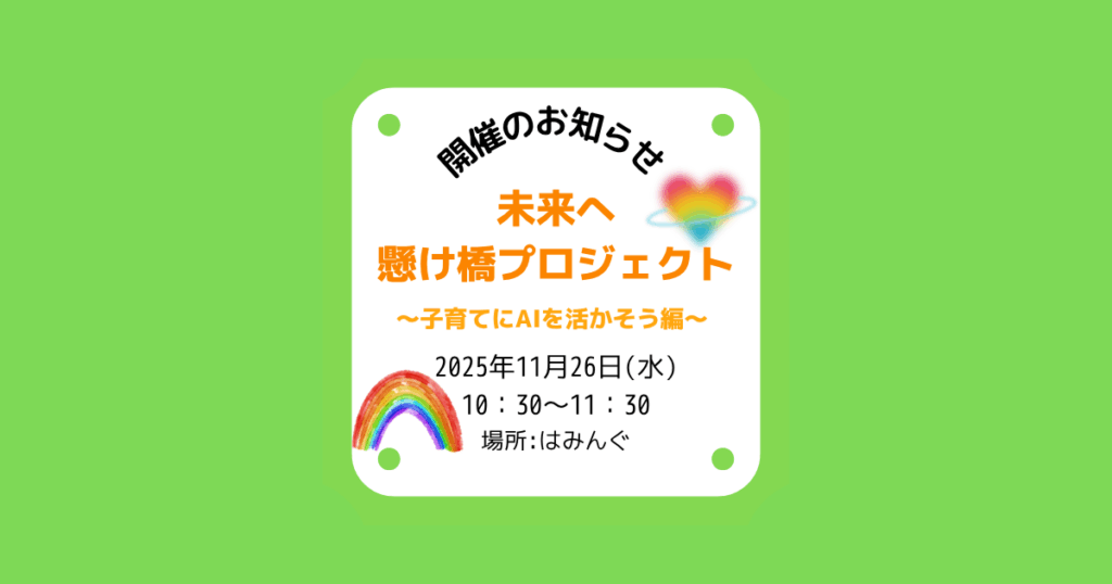 はみんぐ 2025年11月26日(火)未来への架け橋プロジェクト~子育てにAIを活かそう編~ 開催のお知らせ