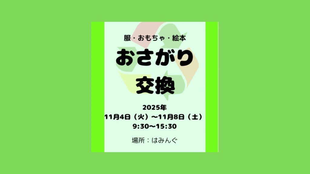 はみんぐ 2025年11月4日(火)~11月8日(土)おさがり交換会開催のお知らせ