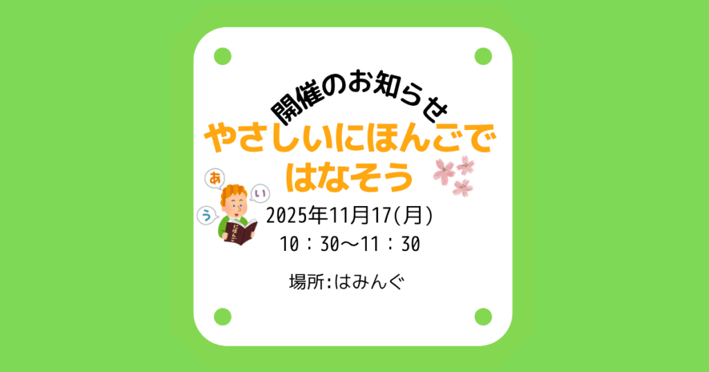 はみんぐ 2025年11月17日(月) やさしい日本語ではなそう 開催のお知らせ