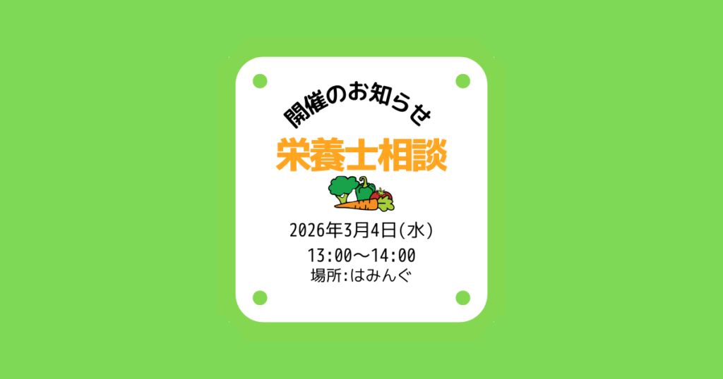 はみんぐ 2026年3月4日(水) 栄養士相談 開催のお知らせ