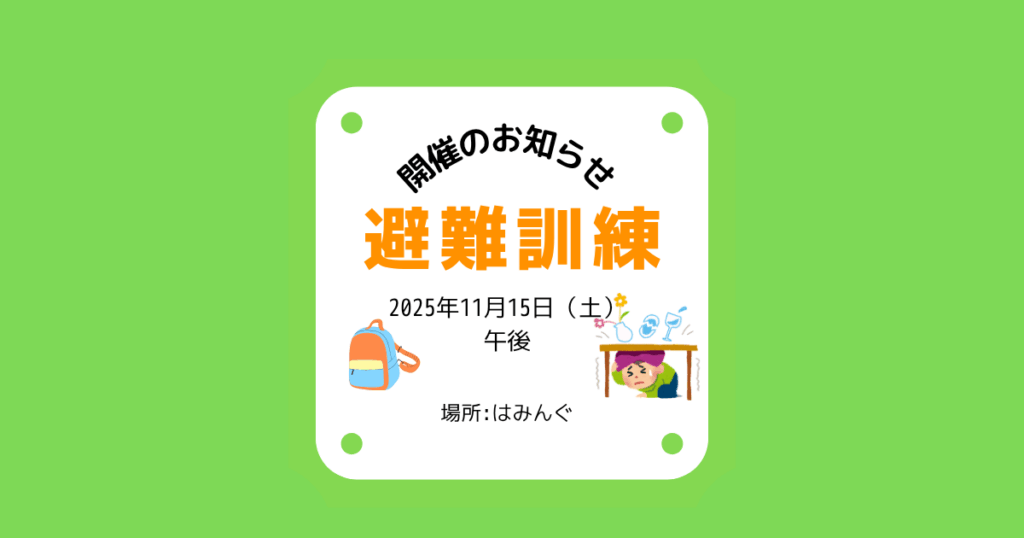 はみんぐ 2025年11月15日(土) 避難訓練 開催のお知らせ