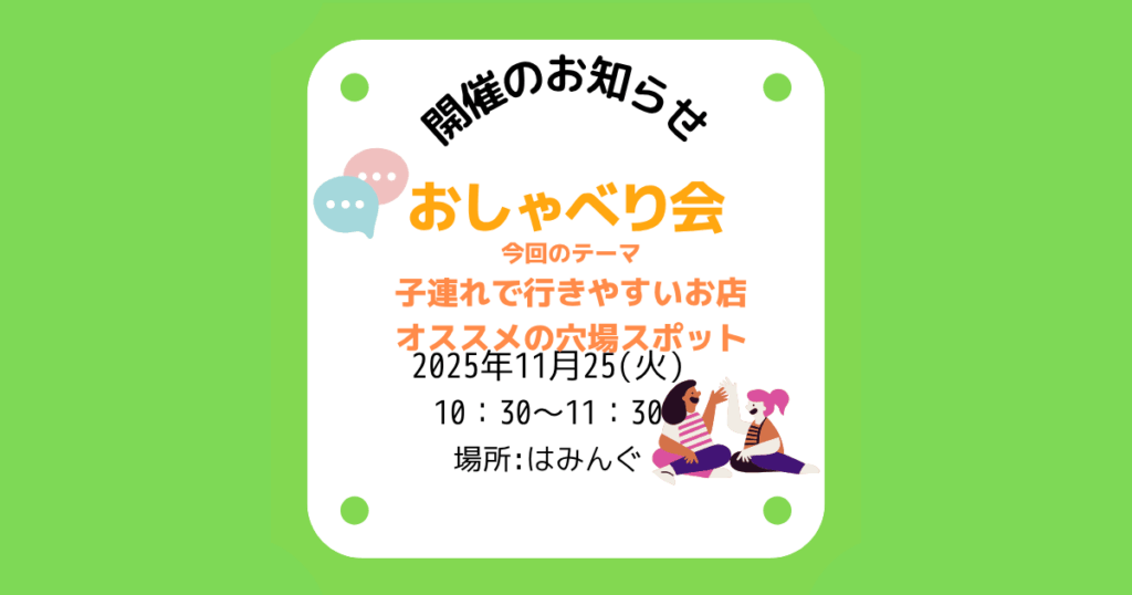 はみんぐ 2025年11月25日(月)おしゃべり会 開催のお知らせ