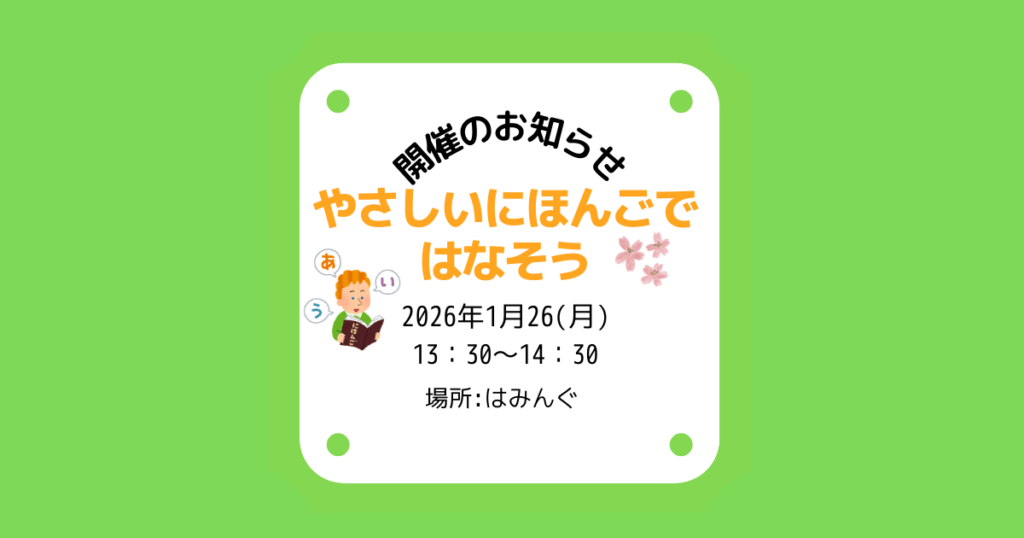 はみんぐ 2026年1月26日(月) やさしい日本語ではなそう 開催のお知らせ