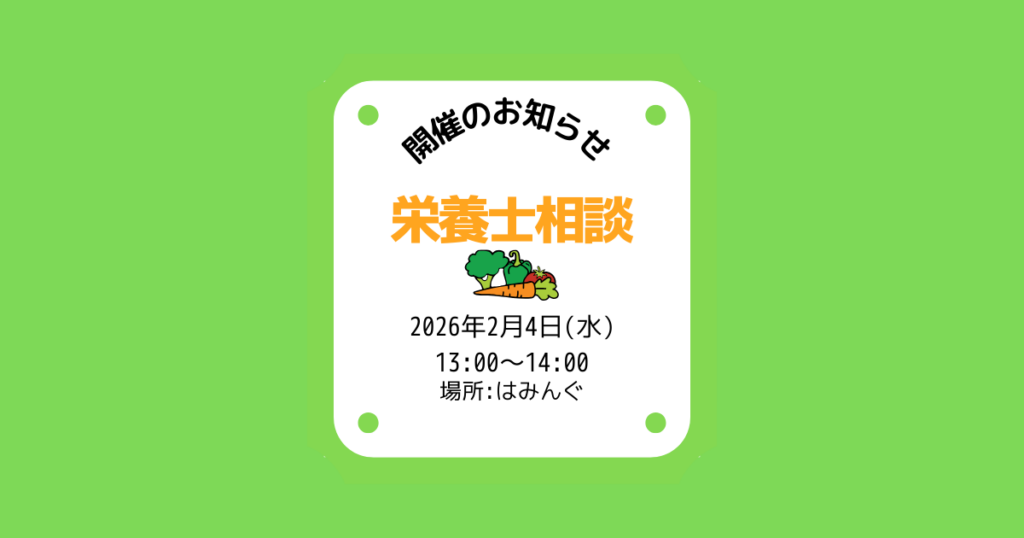 はみんぐ 2026年2月4日(水) 栄養士相談 開催のお知らせ
