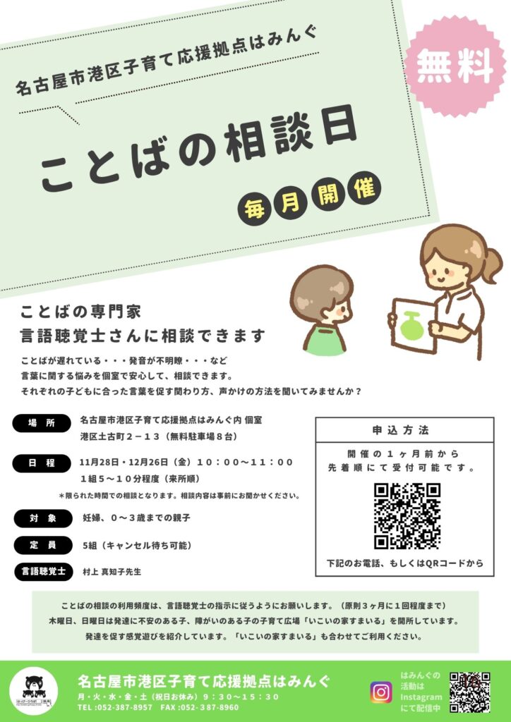 はみんぐでは、普段のひろばでも「ことばの相談」をすることができますが