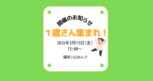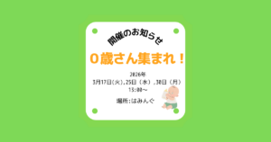 子育て広場で開講なのでおむつ替えや授乳スペースもありますのでお気軽にご参加ください(*^^*)