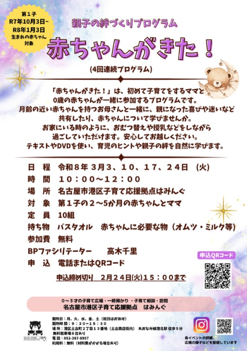 赤ちゃんがきた!4回連続講座(BP講座)を開催します。