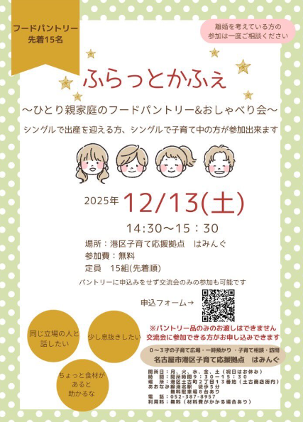 ひとり親家庭のフードパントリーおしゃべり会です。