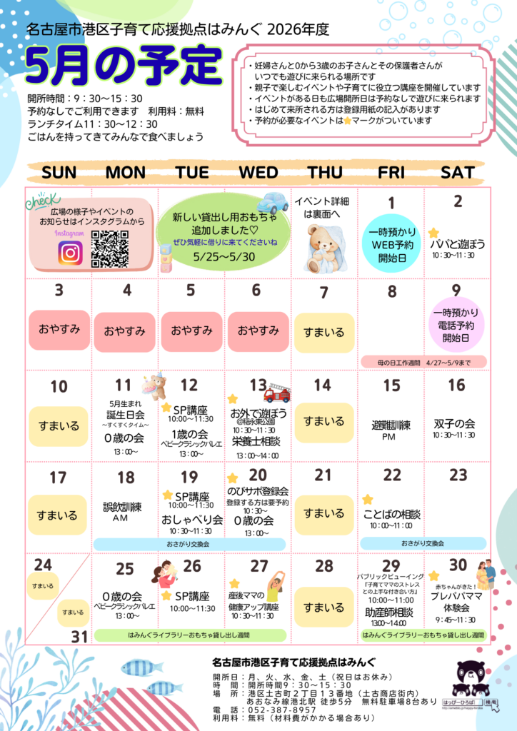 はみんぐ子育て広場・各月の予定 | 一般社団法人はっぴーひろば