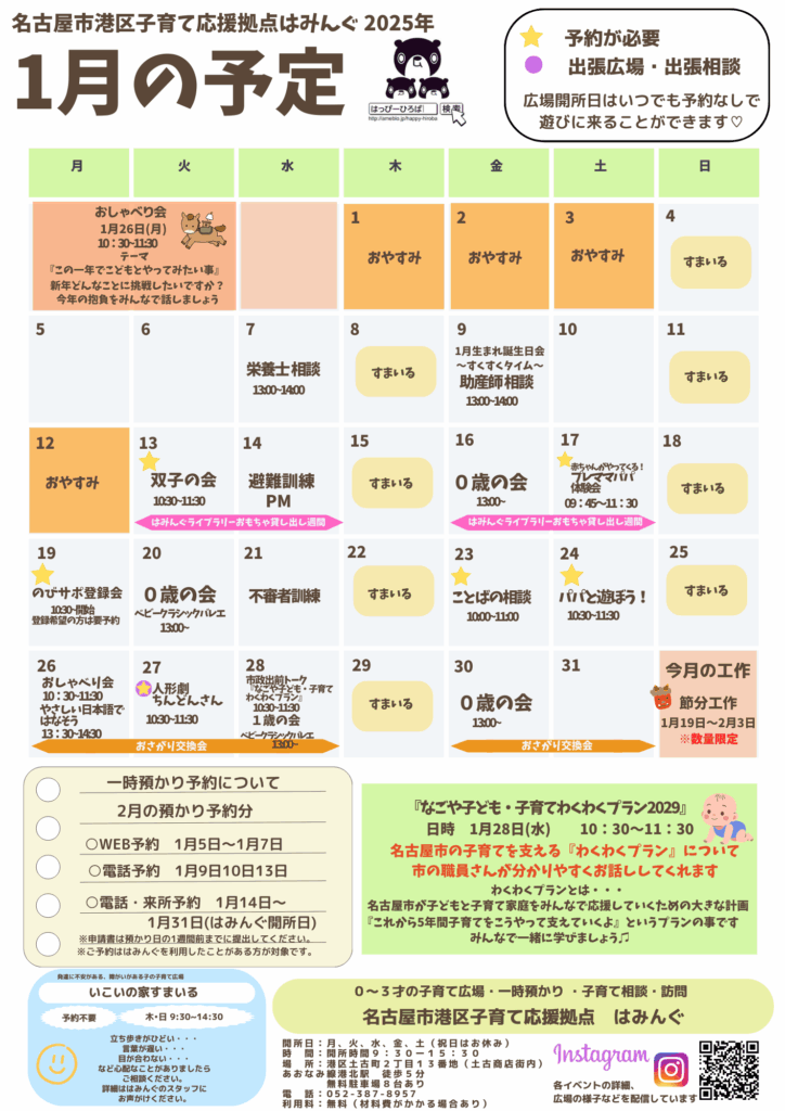 利用するママが帰り道に「はみんぐ」(ハナウタ)歌ってしまうような、遊びに来たママの気持ちが軽くなる広場を目指しています。