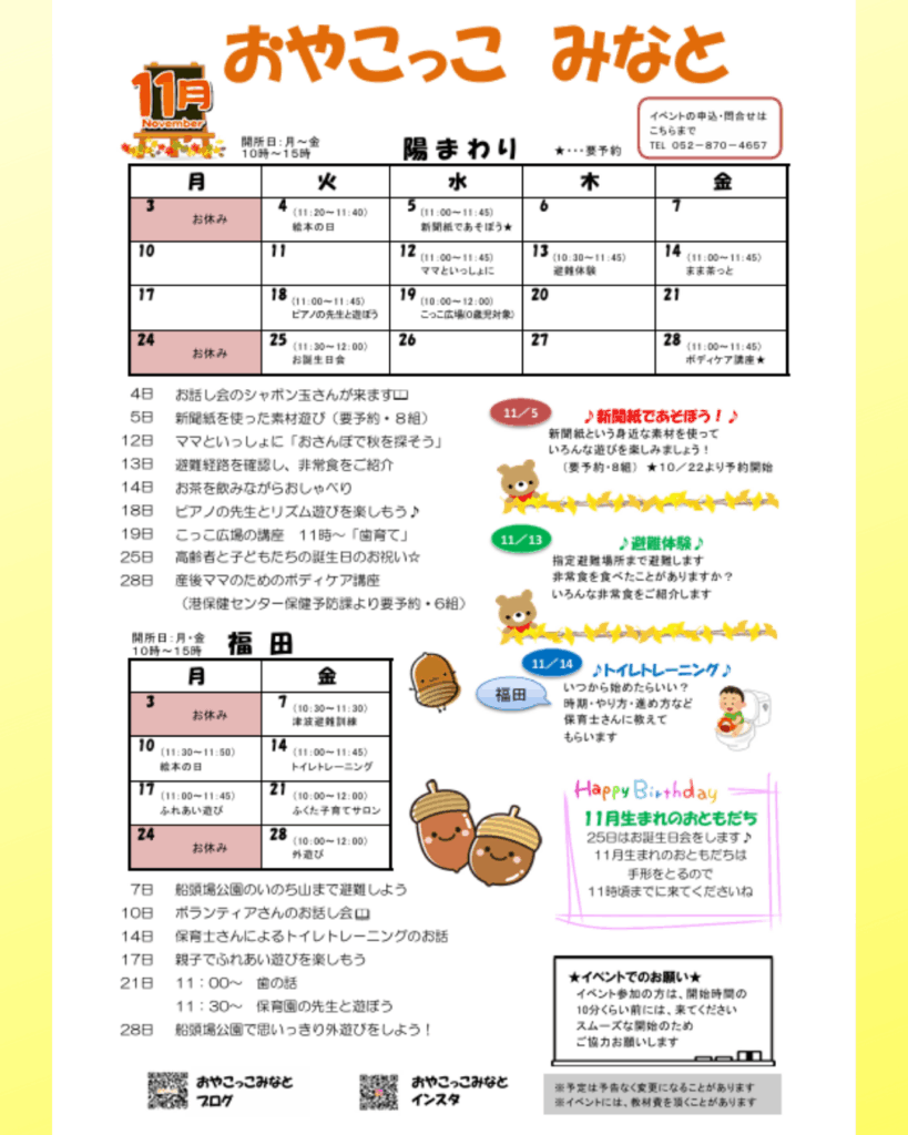 はみんぐ子育て広場・各月の予定 | 一般社団法人はっぴーひろば