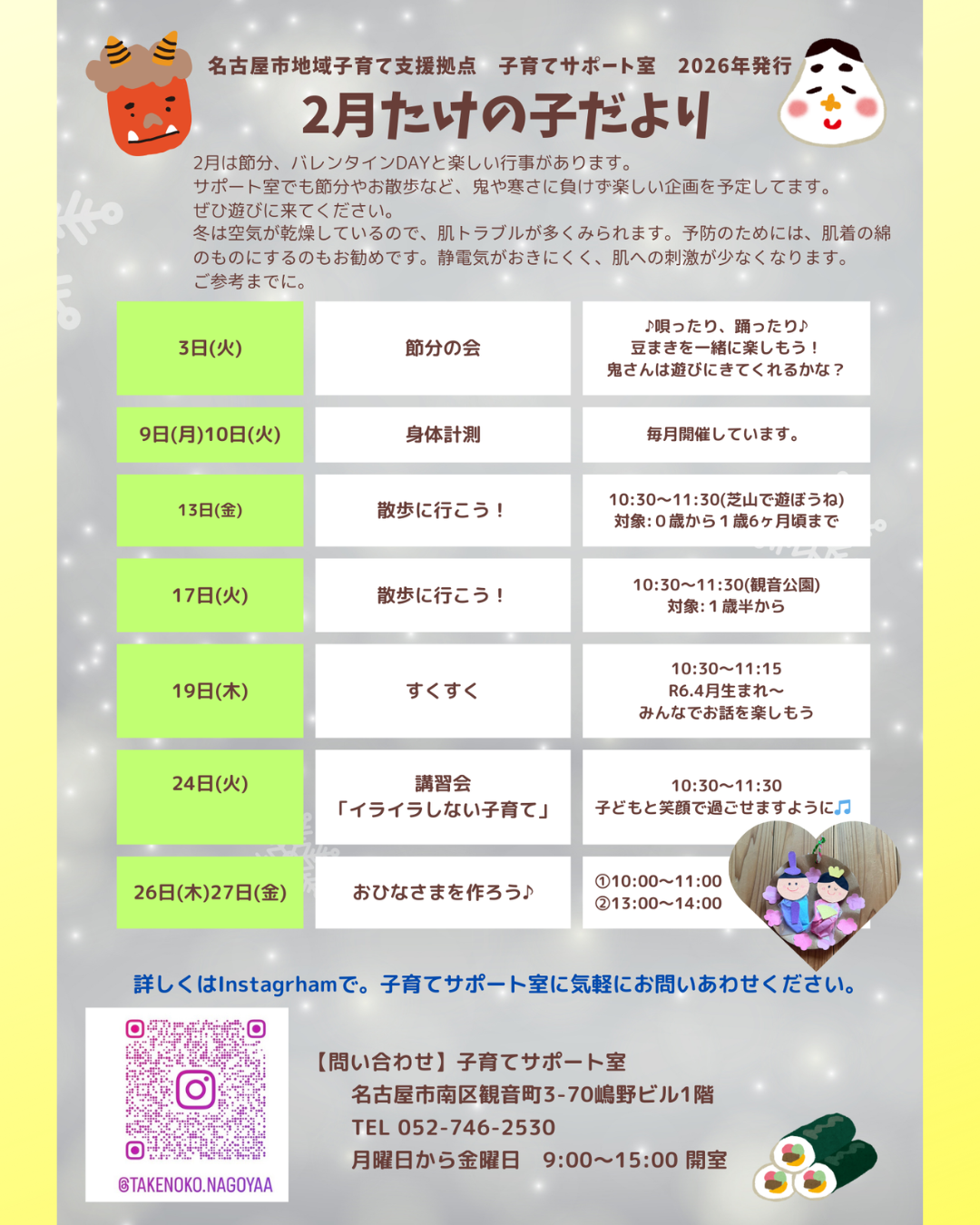 体調に気をつけながら、親子で気軽に集い、ほっとできる時間を過ごしていただければと思います。