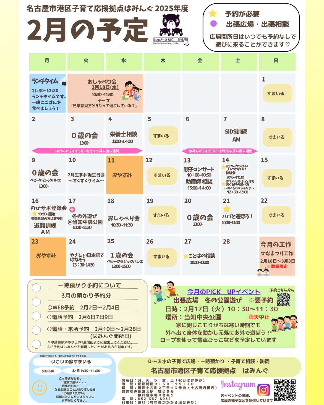 はみんぐ子育て広場・各月の予定 | 一般社団法人はっぴーひろば
