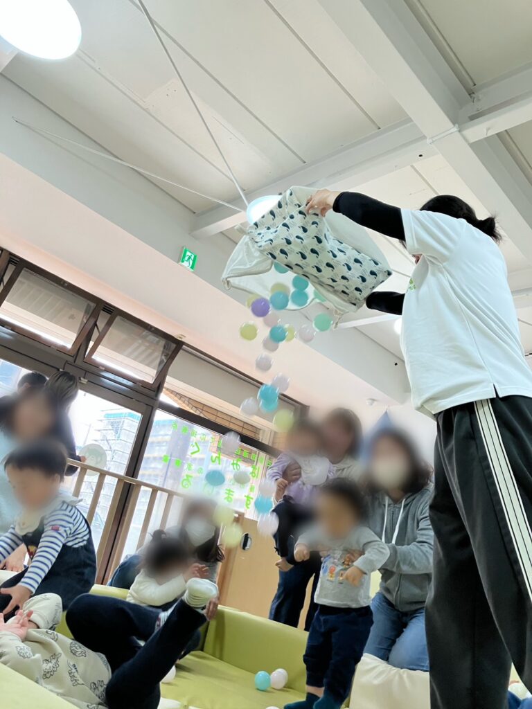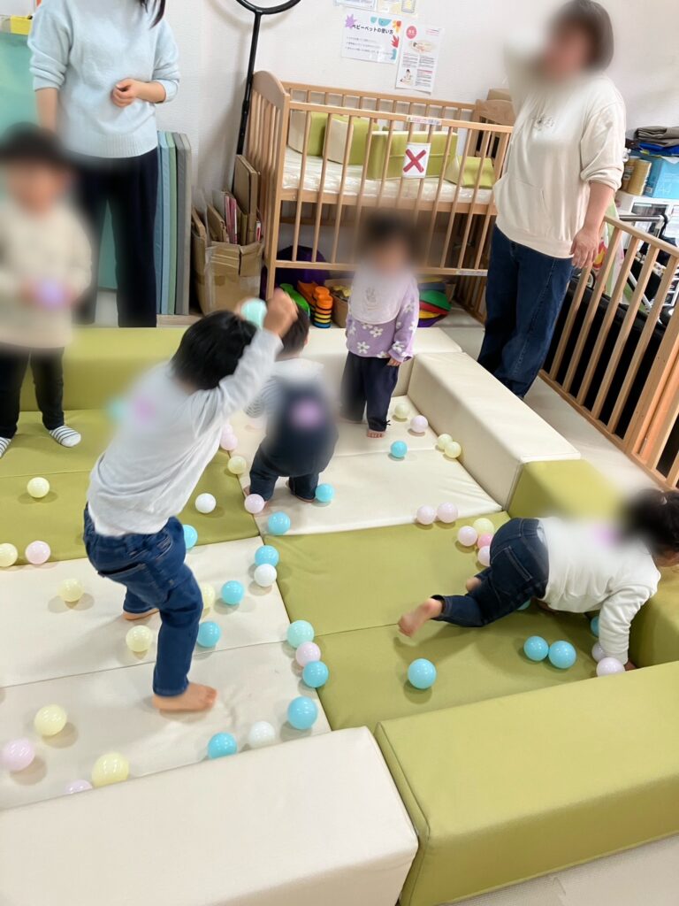 全身で遊びました!ボールプールを上から落とす遊びにみんな大興奮でした♡