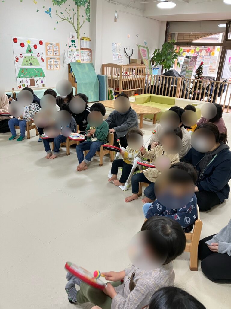 みんなでリズムを合わせての太鼓も、ピアノの音を聞きながら頑張りました。