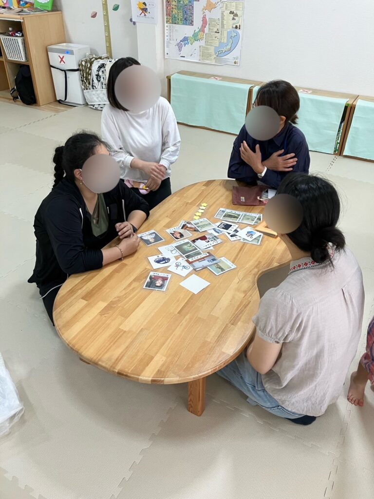 おしゃべり会では、みんなで楽しく絵カードで遊びながら、視覚情報として分かり易く伝えることの大切さについてお話ししました。お支度ボードなど、日常生活で使えるカードなどについても、情報交換しました。