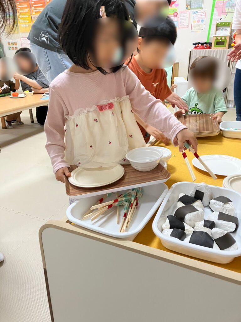 お金をいれる、机をふく、お料理を運ぶの流れを頑張って取り組みました。