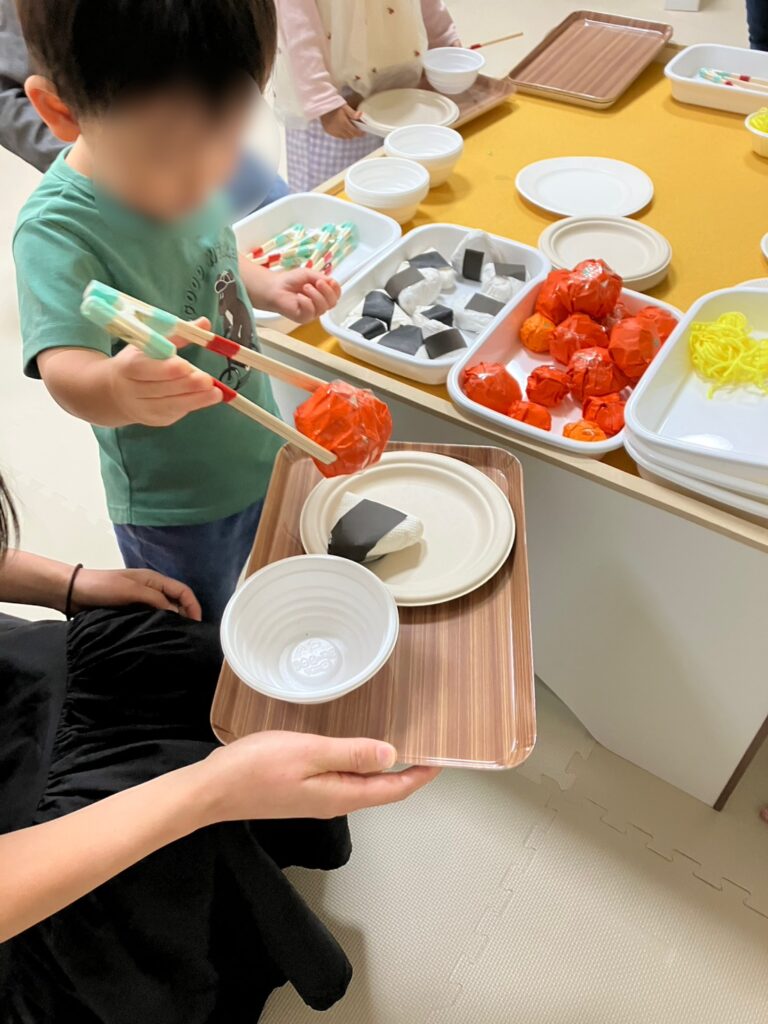つかむ、はさむの動作、左右のバランスや力加減を意識するのは難しいですが遊びのなかで取り組むと楽しみながらできますね!