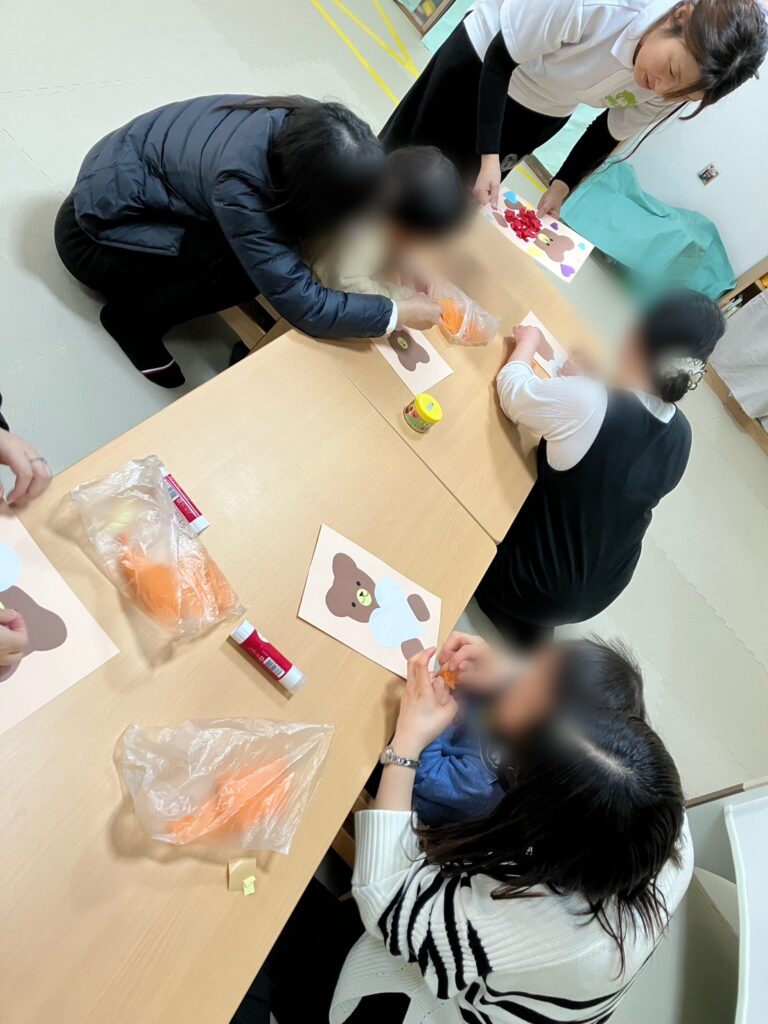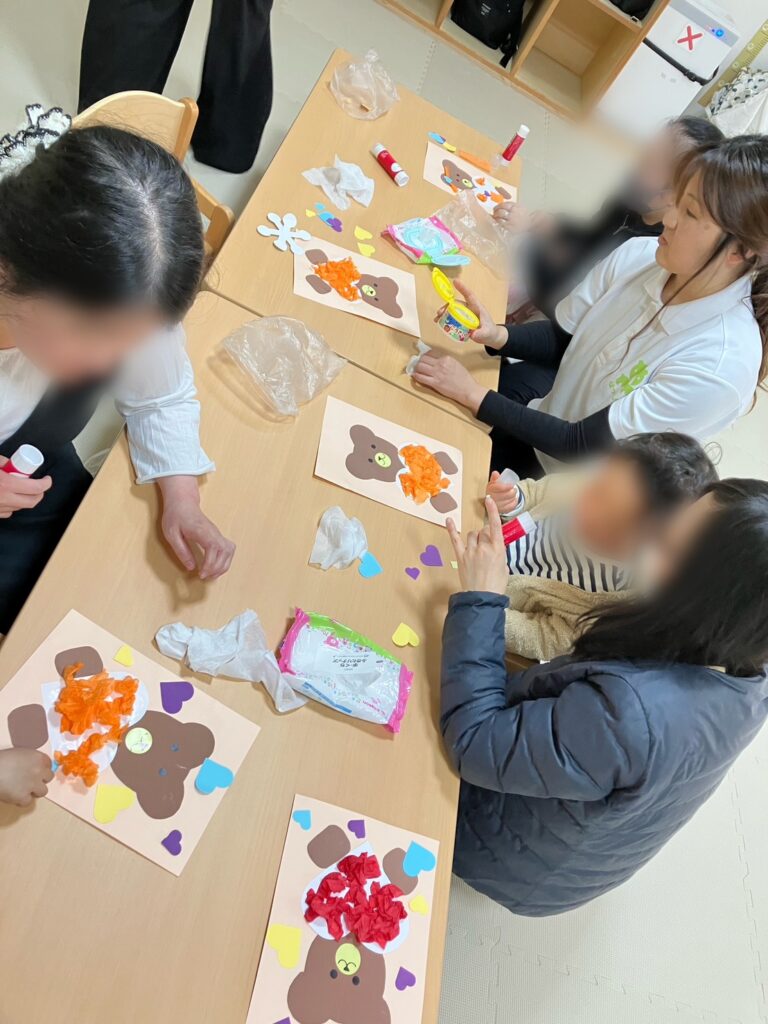 目のシールを貼ったり、花紙をくしゅくしゅして貼付けたりしました🎵