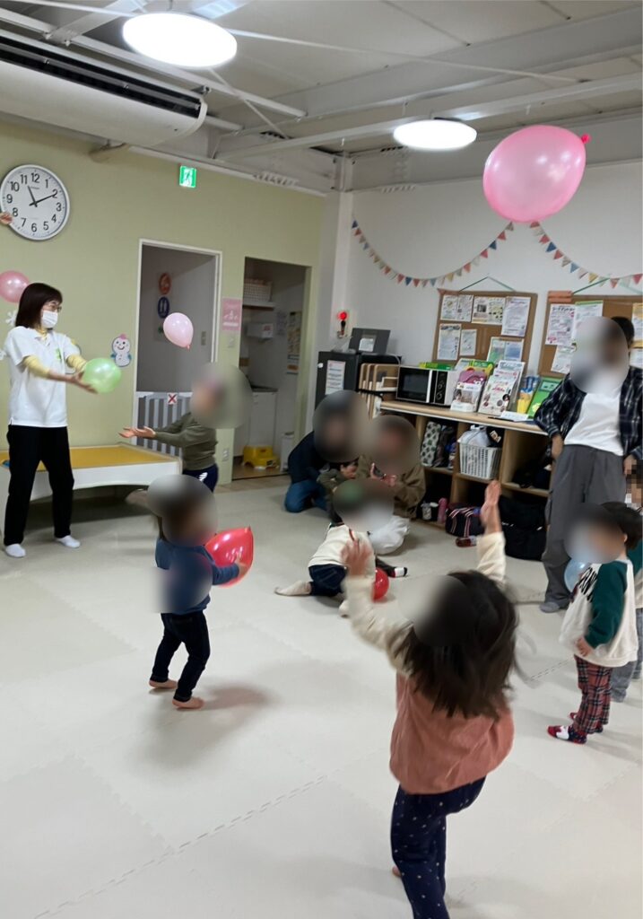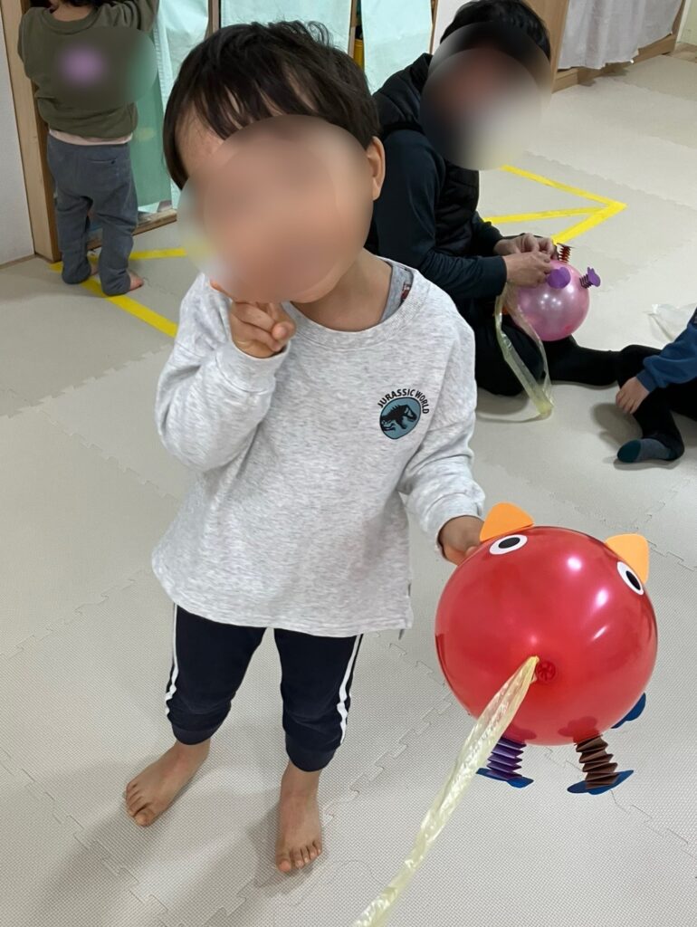 風船を使っていろいろな遊びを楽しんだら、かわいいブタくん風船を作りました🐷