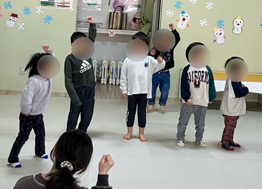 午後のルーティンの体操でも、みんなが前に出て、元気よくできました!