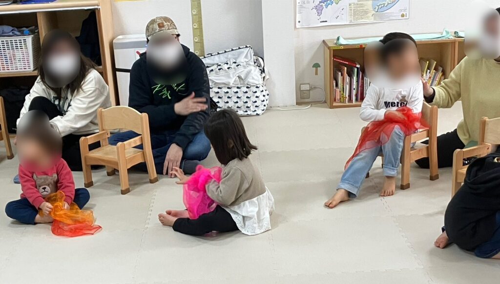 曲にのって、スカーフをふったり、身体をごしごししたりもしました。