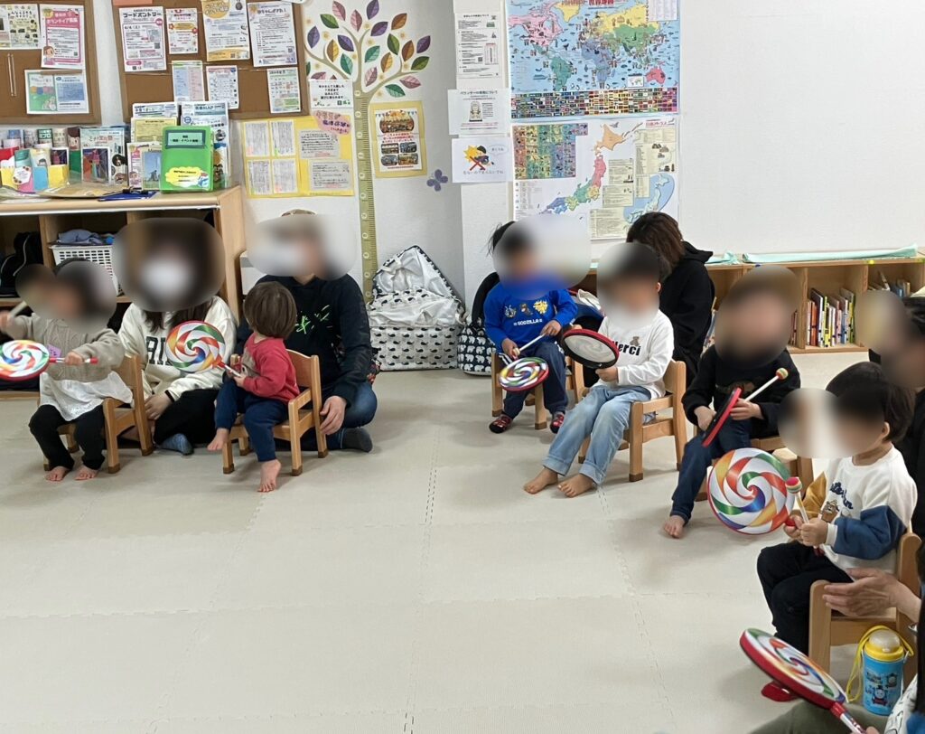 先生のリズムをまねして、周りの音を聞きながら、楽しくたたくことができました♫