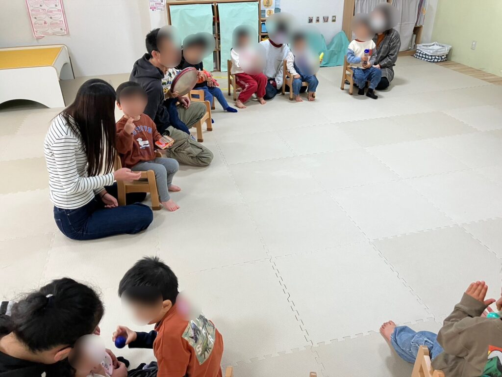順番を待つ練習や、お友達に楽器を渡して関わりあう練習を楽しみながら、がんばって出来ました。