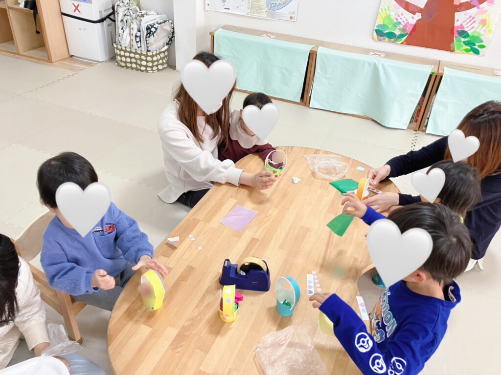いつものルーティンタイムを元気に行った後は、今年度一年のがんばりをお祝いする工作をつくりました。